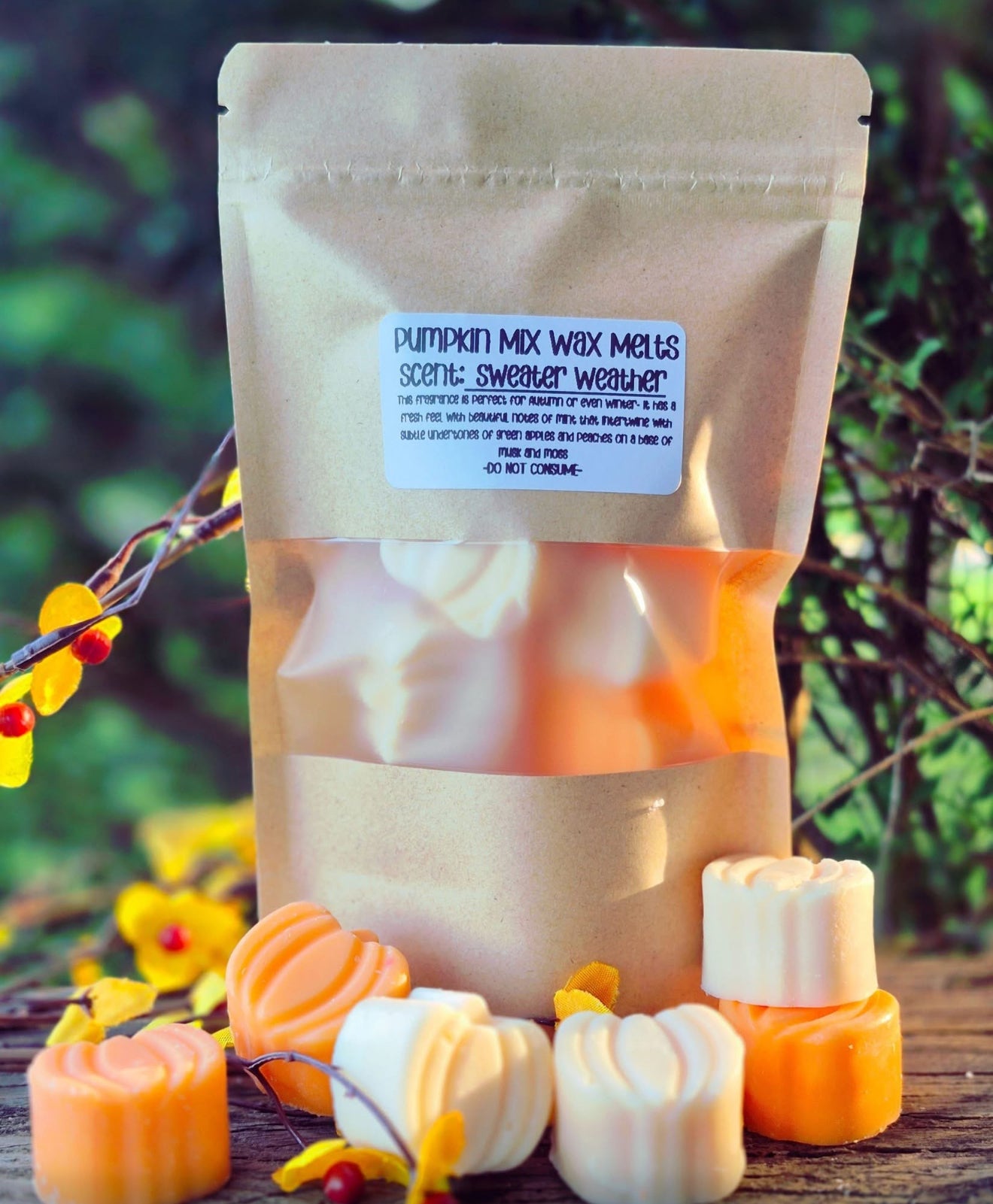 Embrace cozy vibes with our Pumpkin Wax Melts - Sweater Weather. Infused with playful apple and peach undertones blended with warm autumn scents, they fill your space with the perfect fall hug. Light up and let the season’s charm take over!