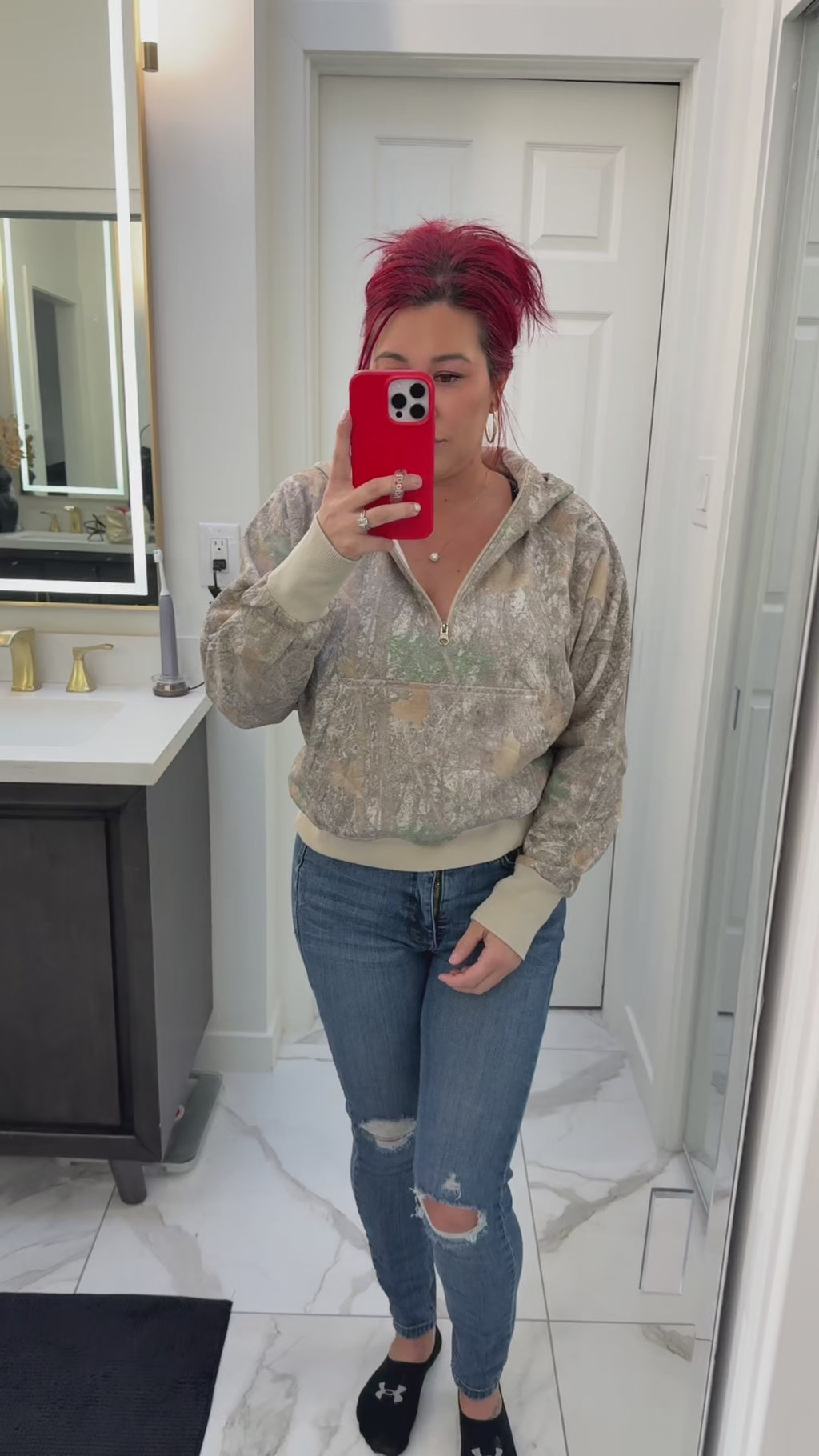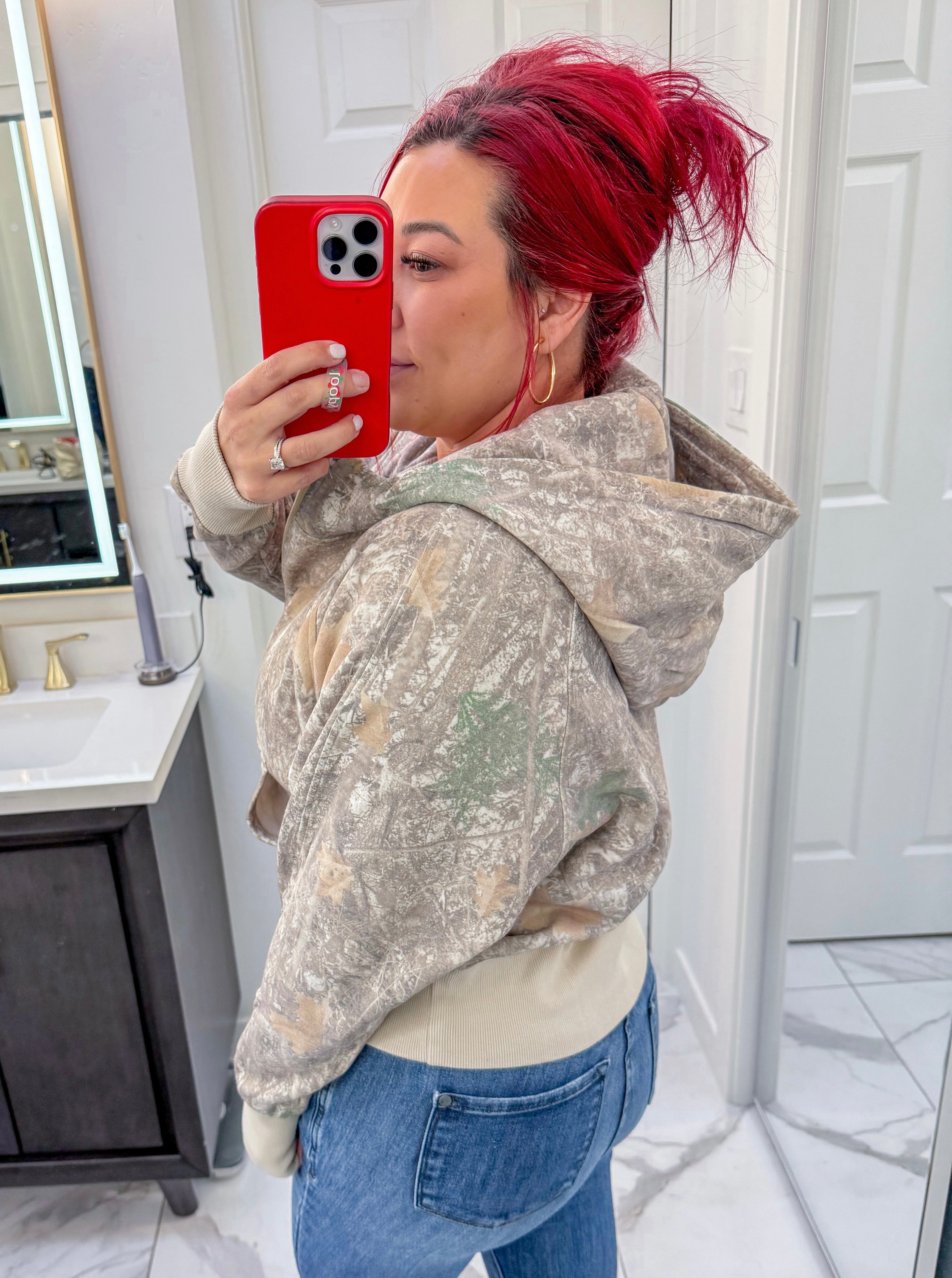 comfort and practicality. Crafted from high-quality fabric, this pullover has a relaxed fit and comes with a front pocket, zip up neckline and hoodie. Semi crop length (covers belly and past top of waist!) Not too short or too long! Perfect! Of course!!! - thumbholes are present!
