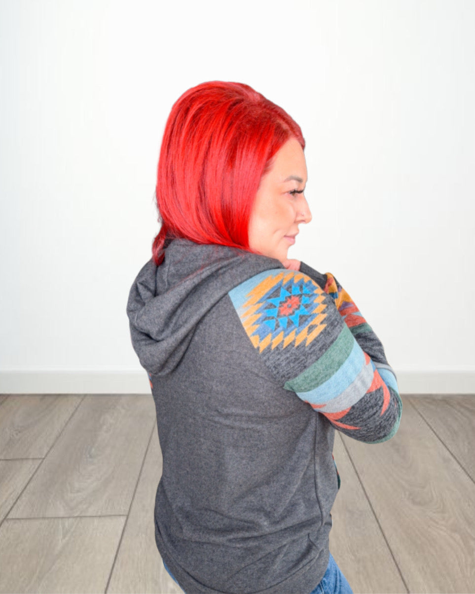 Embrace your bold side with this striking Navy Hoodie featuring an eye-catching Aztec print design. The button-up front gives you versatile styling options—wear it open as a lightweight layer or buttoned up for cozy warmth. Perfect for casual outings or relaxed weekends, this piece celebrates individuality while keeping you comfortable. The classic navy base pairs effortlessly with your everyday wardrobe, making it a go-to favorite you'll reach for again and again.
