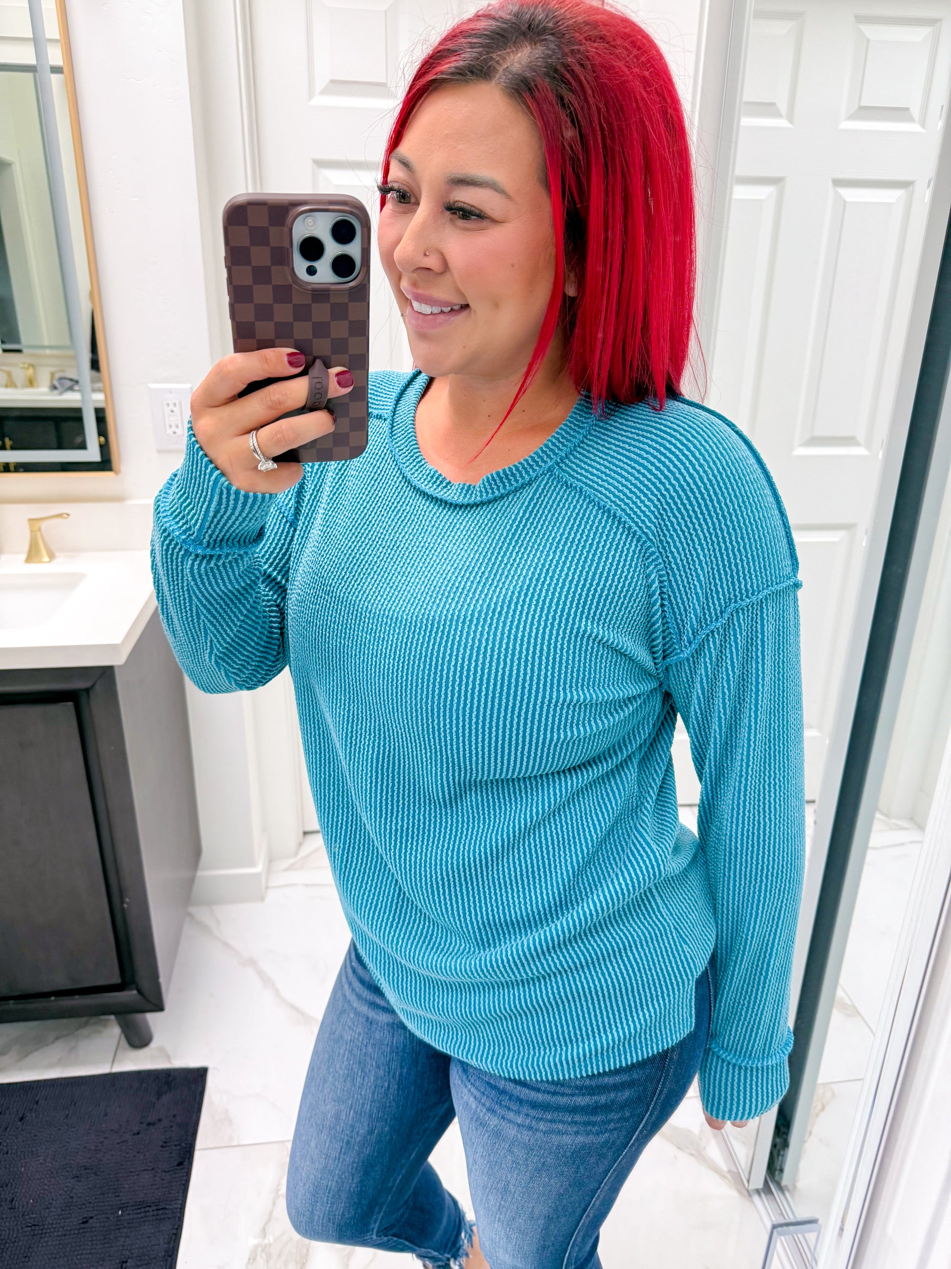 Meet the Birch Top, your new go-to for cozy cool vibes. This solid ribbed beauty rocks a round neck and laid-back drop shoulders that scream effortless style. With charming exposed stitching and cheeky split sides, it adds a playful twist to your everyday look. Long sleeves keep you comfy while you strut your stuff—wear it solo or layered for endless fun!