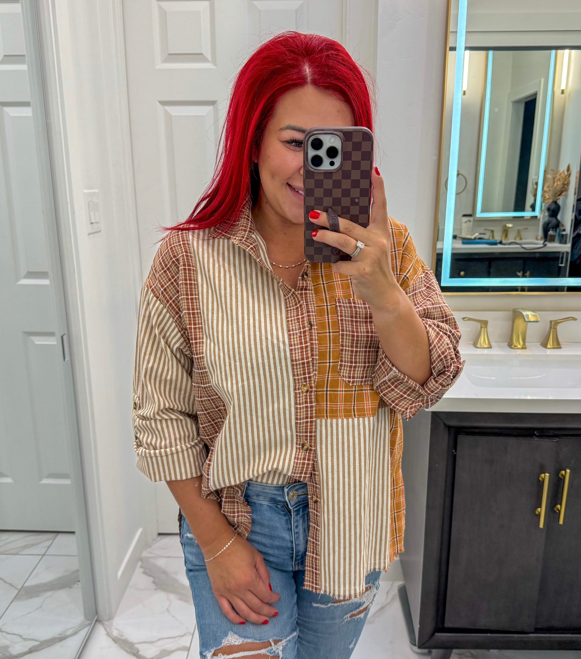Discover the endless styling possibilities of the Stephanie Plaid Button Down! This versatile top's mix and match design allows you to effortlessly create multiple looks. Elevate your wardrobe with this must-have piece!